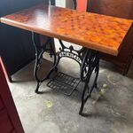 Vintage American Sewing Machine Table with End Cut Marquetry Top